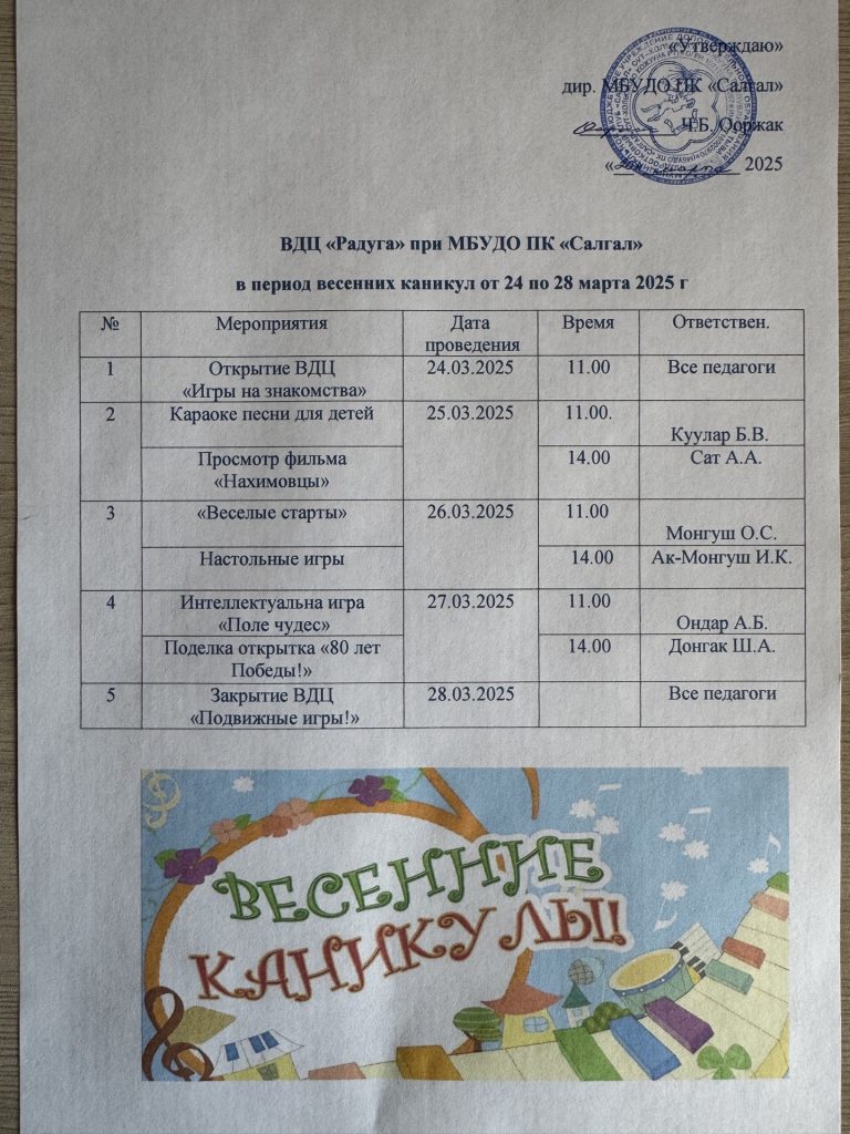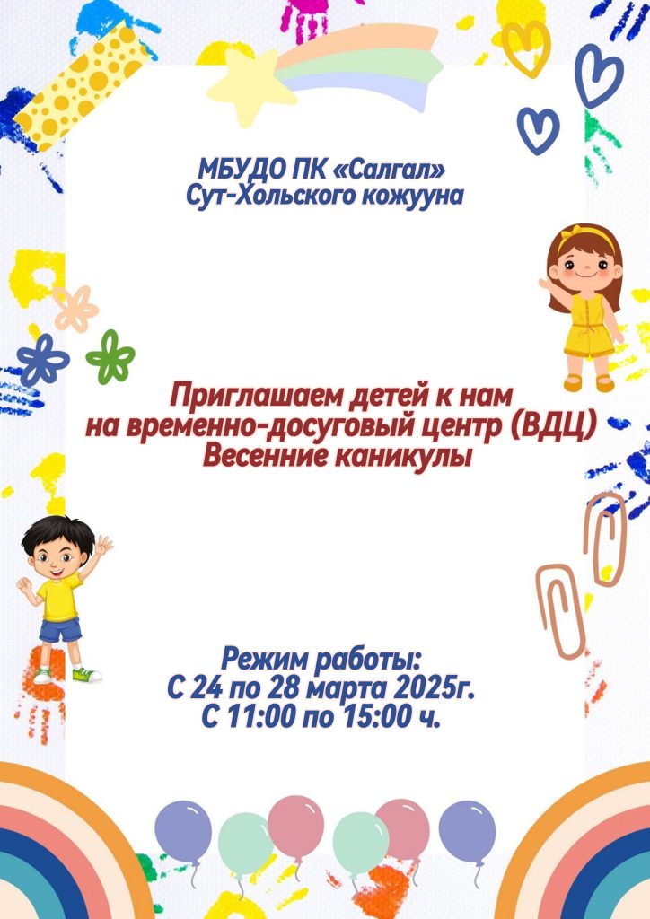 Период весеннего сезона ВДЦ «Радуга» в МБУДО ПК Салгал будет работать с 24 до 28 марта с охватом 15 детей. Каждый день с 11 до 15 часов. Сегодня при открытии ознакомили детей с режимом работы , планом ВДЦ и инструктажем ТБ . В первый день ВДЦ дети играли в игры. «Игры на знакомства», «Здоровываемся по разному», «Зарница», «Ключики». В процессе игры ребята узнают друг друга, дают возможность узнать и запомнить имена, интересы, увлечения и способности участников. #УправлениеобразованияСут_Хол