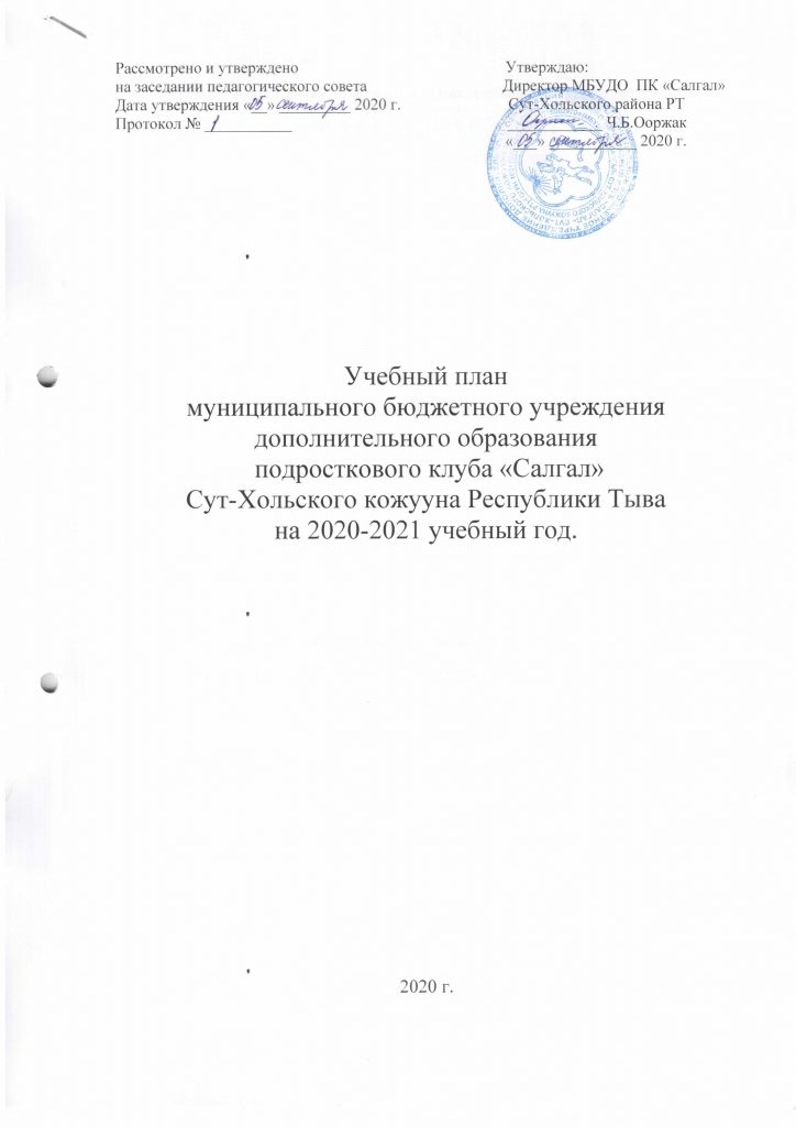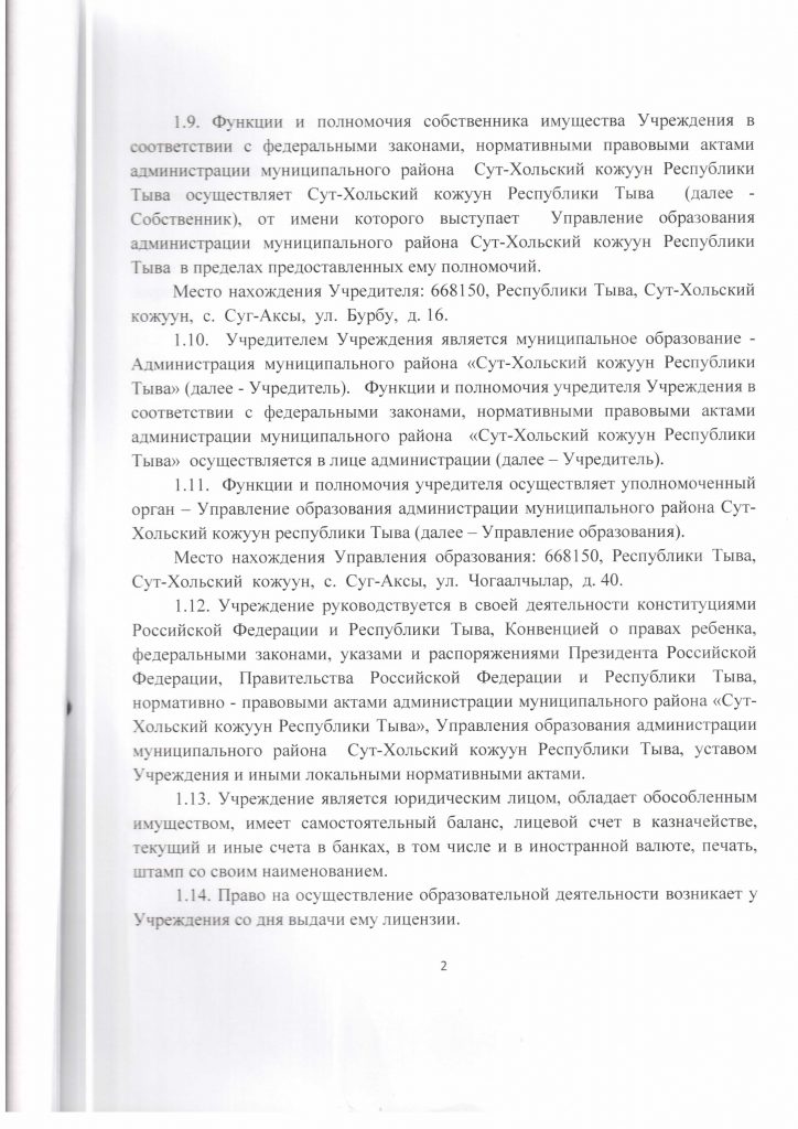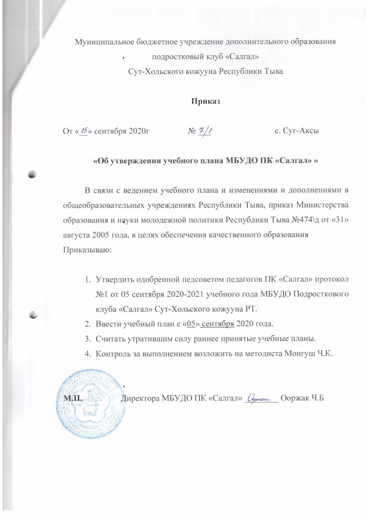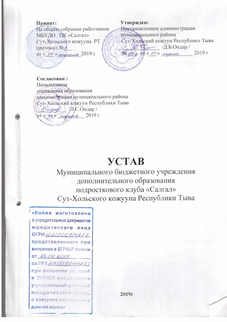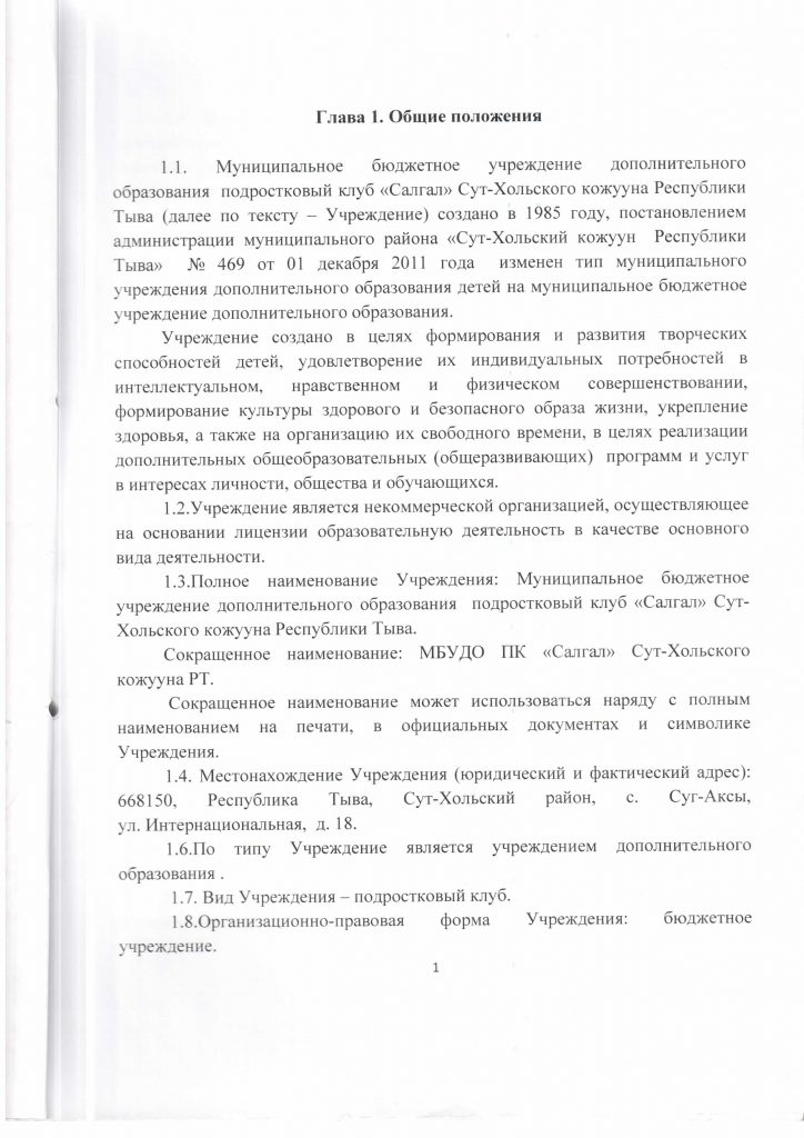 Устав МБУДО ПК «Салгал» Сут-Хольского кожууна Республики Тыва